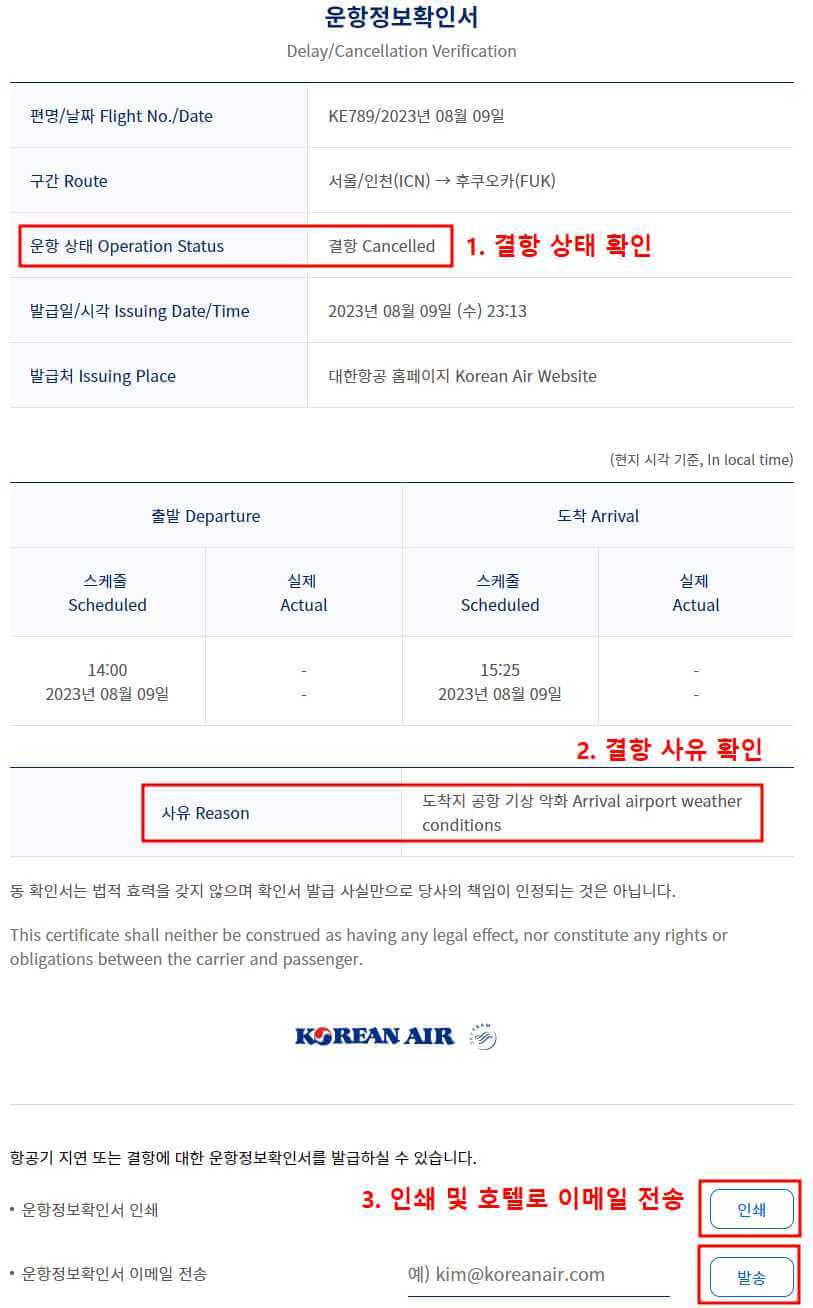 2) 보상 청구시 필요 서류 : 보상을 청구할 때는 항공권, 결항 확인서, 결제 내역 및 안내 문자 등이 필요하며 서류 제출 후 항공사에서 정해진 절창 따라 보상 여부가 결정됩니다.