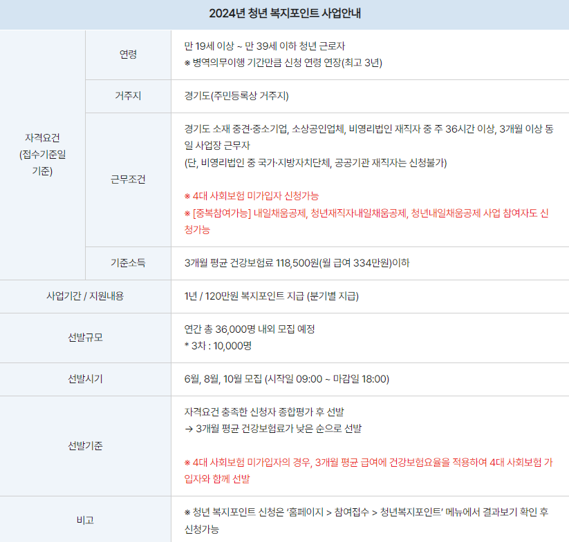 [모집 공고] 2024년 경기도 청년 복지포인트 3차 모집 공고 (10.1.~ 10.11.18시)