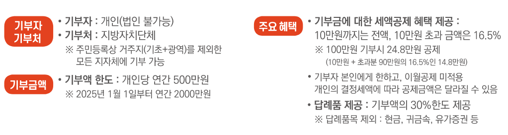 : 자신이 주민등록상 거주하고 있는 지역을 제외한 지역에 기부 가능