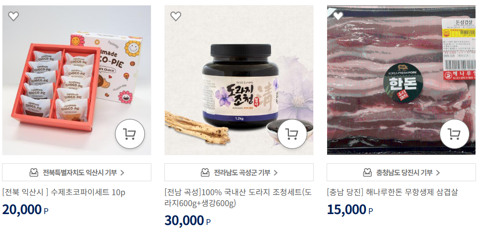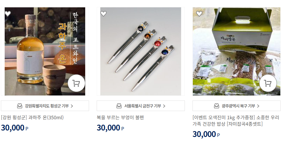 지역특산품 홍보 효과와 동시에 기부자에게 직접적인 보상 제공