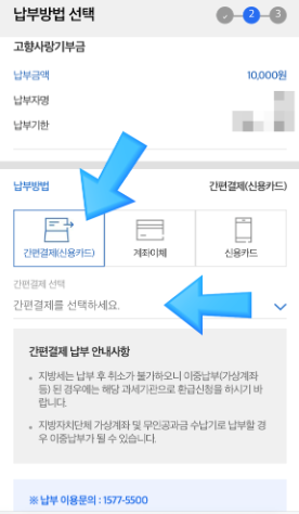 납부방법 선택을 개인에게 편한 방법으로 선택하여 납부를 합니다.