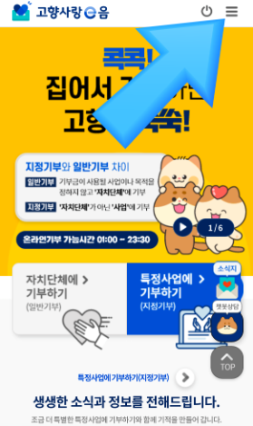 네이버에 '고향사랑기부' 또는 '고향사랑e음' 을 검색하여, 고향사랑e음 공식 홈페이지에 접속합니다.