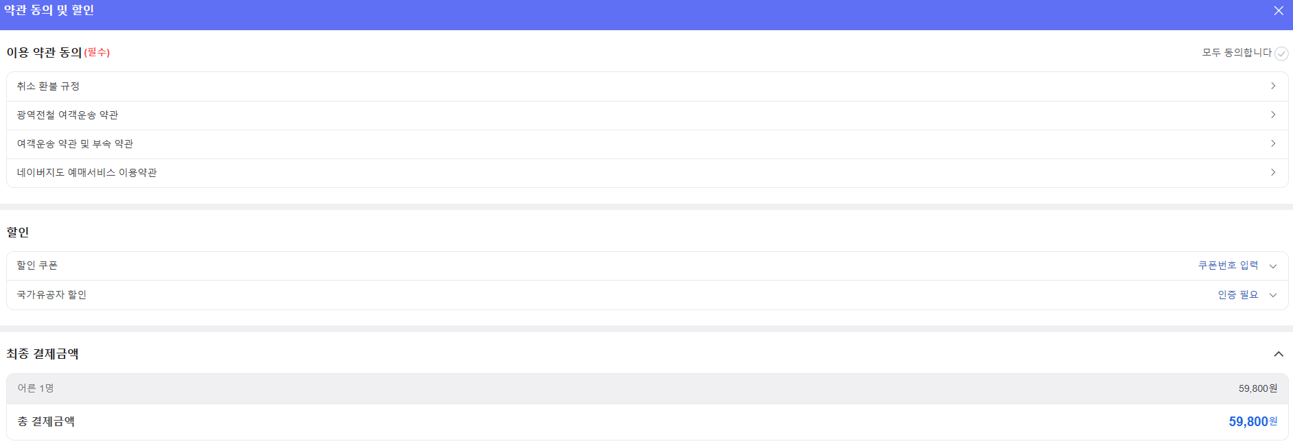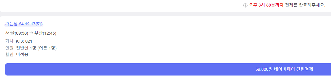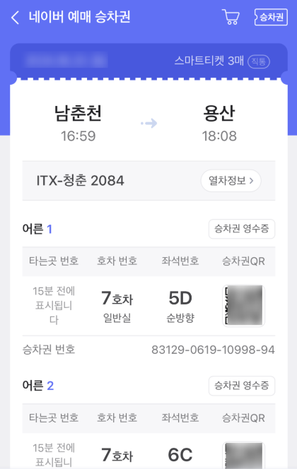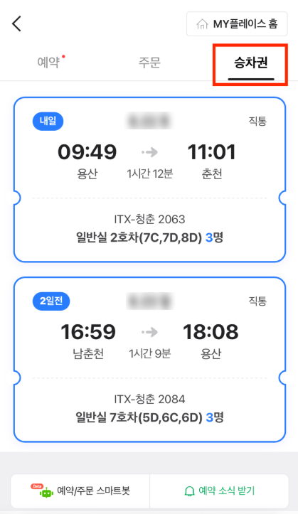 예매한 열차표는 네이버 예약하기에서 확인이 가능합니다.