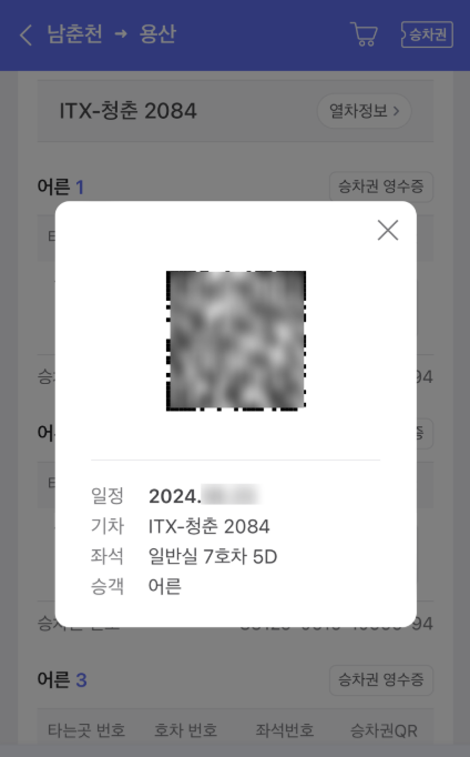 5. 각각의 승차권을 클릭하면 모바일 승차권을 확인할 수 있습니다.