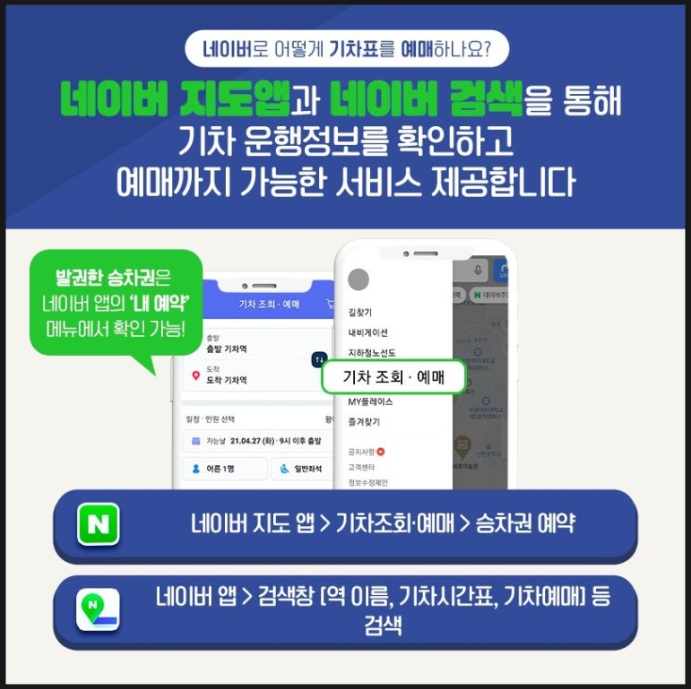 '네이버 지도 - 기차' (네이버지도 앱) 접속 후 검색 (스마트폰, PC 동일)