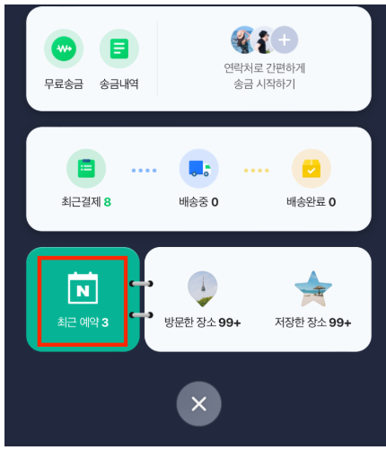 3. 하단 좌측에 최근예약란을 클릭합니다.