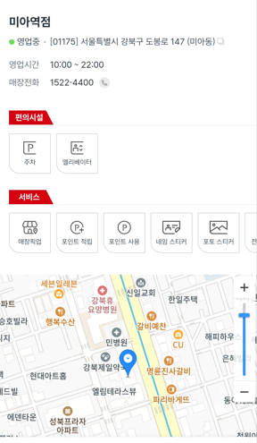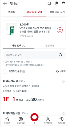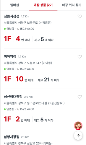 6. 매장 재고 확인 : 해당 매장의 재고 수량 및 매대 위치를 확인할 수 있습니다.
