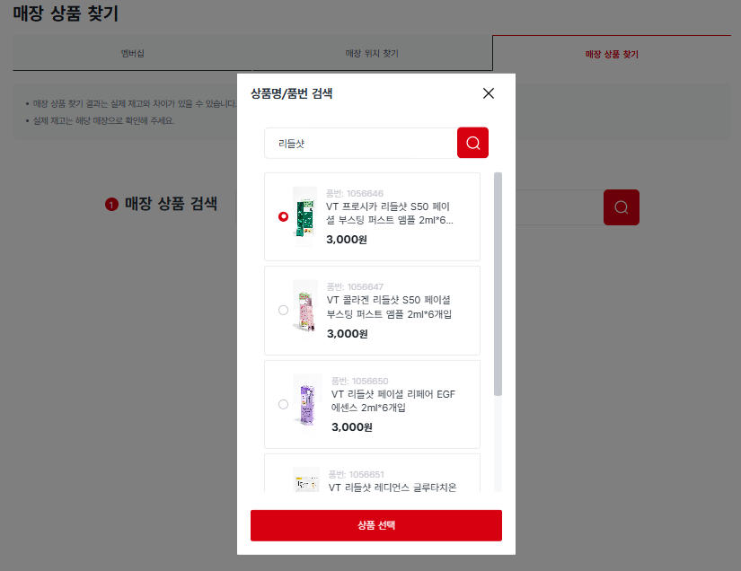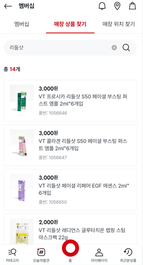 : 매장 상품 찾기 검색란에 "리들샷" 입력 후 검색합니다.