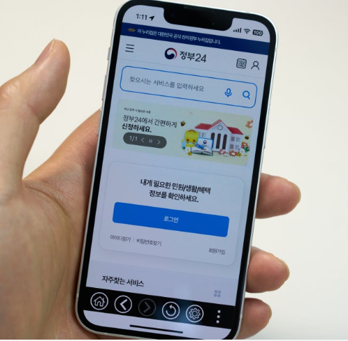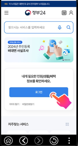 1. 정부24 앱을 다운로드한 후 로그인을 합니다.