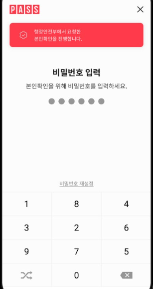 3. 본인인증을 등록된 PASS앱으로 인증합니다.