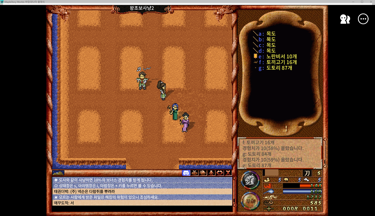 - 중급 사냥터 (20~50레벨): 구천 동굴, 도깨비 마을, 해골 동굴 등.