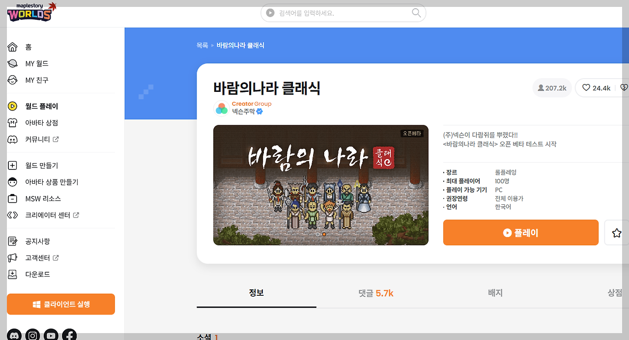 바람의 나라 클래식을 다운로드하는 방법은 간단합니다. 메이플스토리 월드 플랫폼을 통해 다운로드할 수 있으며, 아래의 단계를 따라 진행하시면 됩니다.
