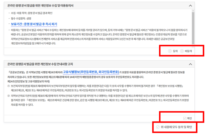 : 동의 및 확인 진행