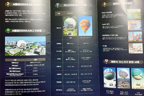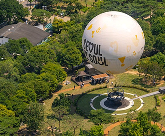서울달은 지름 22mm의 거대한 달모양을 한 열기구 입니다.열기구입니다. 일반 열기구와는 달리 비인화성 가스를 사용하여 헬륨의 부력을 이용해 수직상승하게 되며, 기구 몸체는 지면과 케이블로 연결되어 예정된 비행구간이 아닌 다른 장소로 이탈되는 것을 방지하여 매우 안전하게 운행이 됩니다. 여의도 공원에서 상공으로 130m 상승하여 서울의 스카이 라인과 한강을 조망하는 관광용 열기구입니다.
