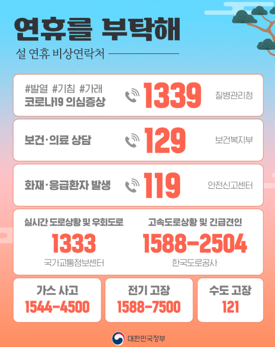 - 보건복지상담센터(☎129): 연휴 동안 운영 병원과 약국 정보를 안내받을 수 있습니다.