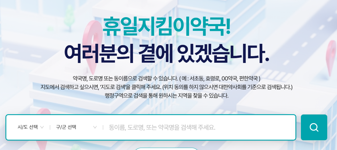 - 휴일지킴이 약국은 공휴일이나 명절에도 운영하는 약국 정보를 제공하는 플랫폼입니다.