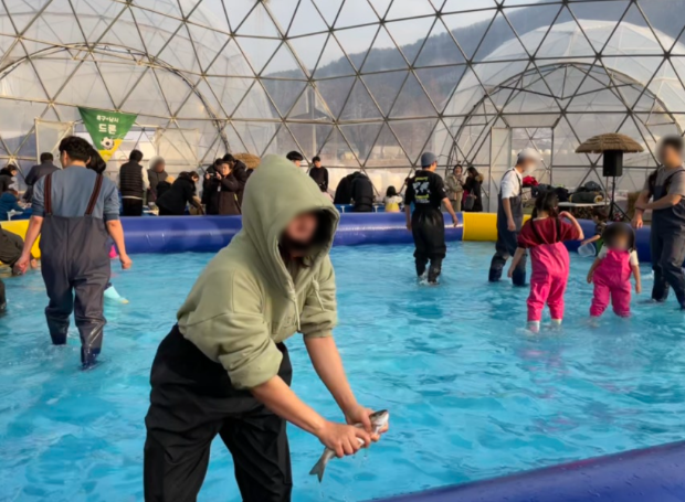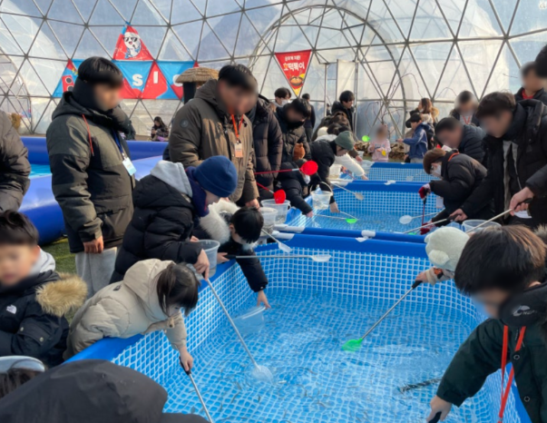 2. 돔빙송어패키지 : 돔 입장 + 빙어 뜨기 체험(튀김) + 송어 맨손 잡기(튀김) => 27,000원