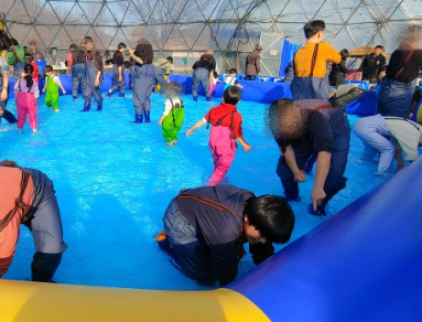 4. 돔빙송어눈패키지 : 돔하우스 입장 + 빙어뜨기 체험 + 송어 맨손잡기 + 키즈눈썰매 + 송어 빙어 튀김 => 57,000원