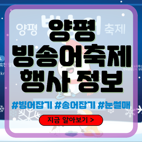 그 외 수미찐빵 만들기, 달고나 만들기, 4륜 오토바이 체험, 피자만들기 체험 등 다양한 프로그램이 있습니다. 2024년 양평빙송어축제는 11월 23일부터 2025년 3월 3일까지 진행됩니다. 축제는 양평의 수미마을에서 열리며, 이곳은 아름다운 자연경관과 함께 다양한 겨울 활동을 즐길 수 있는 최적의 장소입니다.