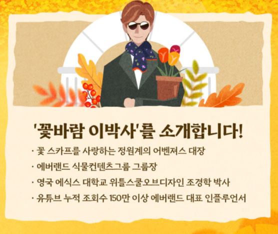 - 에버랜드에서 마련한 전용 셔틀버스를 타고 신원리 은행나무숲 입구로 이동해 왕복 약 2㎞ 길이의 은행나무길을 걸으며 가을 단풍을 만끽할 수 있습니다. 숲속에 마련된 명상장에서는 이준규 에버랜드 식물콘텐츠그룹장(조경학 박사)가 은행나무숲에 담긴 재미있는 이야기를 들려줄 예정입니다.
