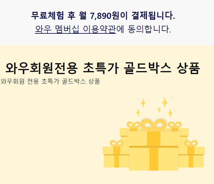 와우회원 가입비가 부담스러우신분들은 무료로 시청하시기 위해 와우멤버십 30일 무료체험을 통해서 월 연회비 없이 예매를 하실 수 있습니다.