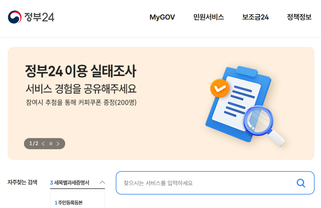 인터넷으로 정부24 포털사이트에 접속을 합니다.