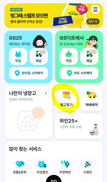 GS25편의점은 '우리 동네 GS' 앱을 통해 자가진단키트의 재고를 확인할 수 있습니다.