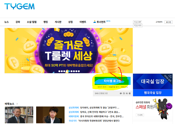 - 타이젬바둑 홈페이지 접속하기 : 먼저 타이젬바둑 공식 홈페이지에 접속합니다.