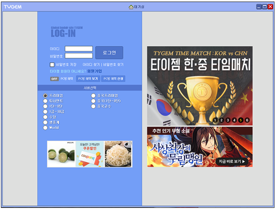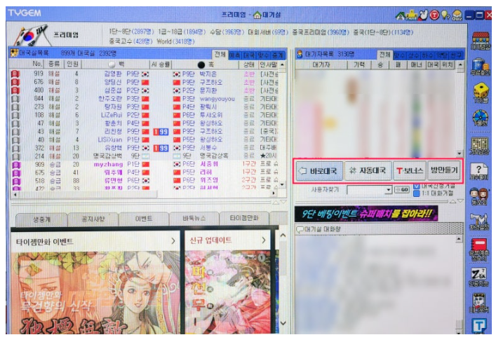 1. 컴퓨터 바탕 화면에 설치된 '타이젬 바둑 대국실'이라는 아이콘을 그걸 클릭합니다.