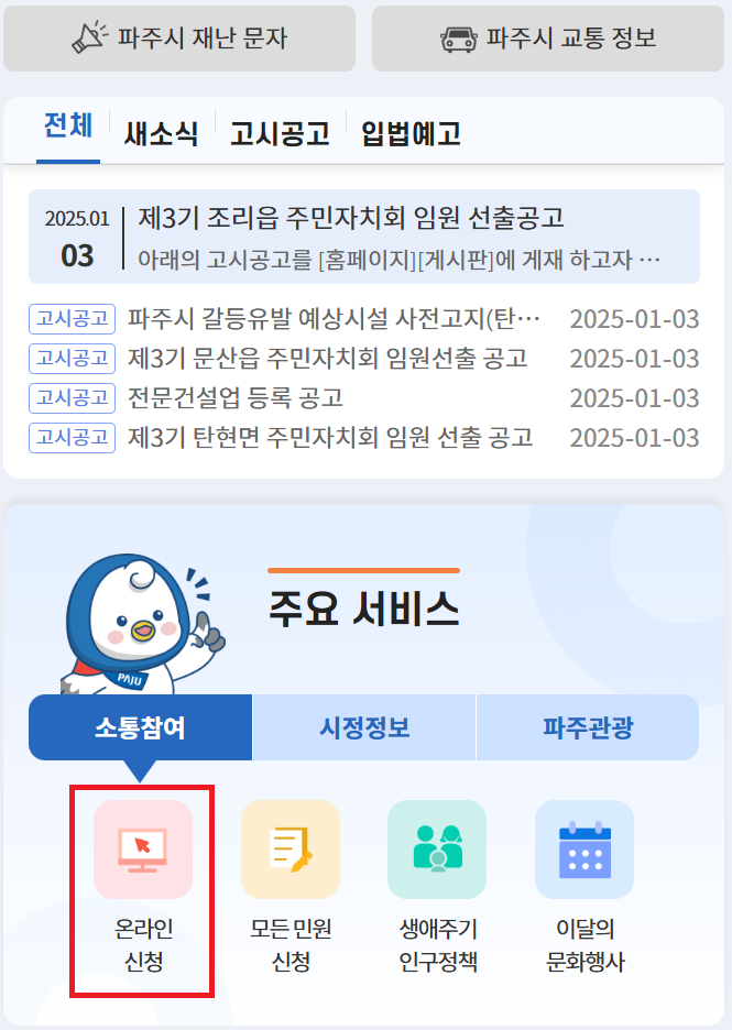 - 사이트: 파주시 공식 홈페이지