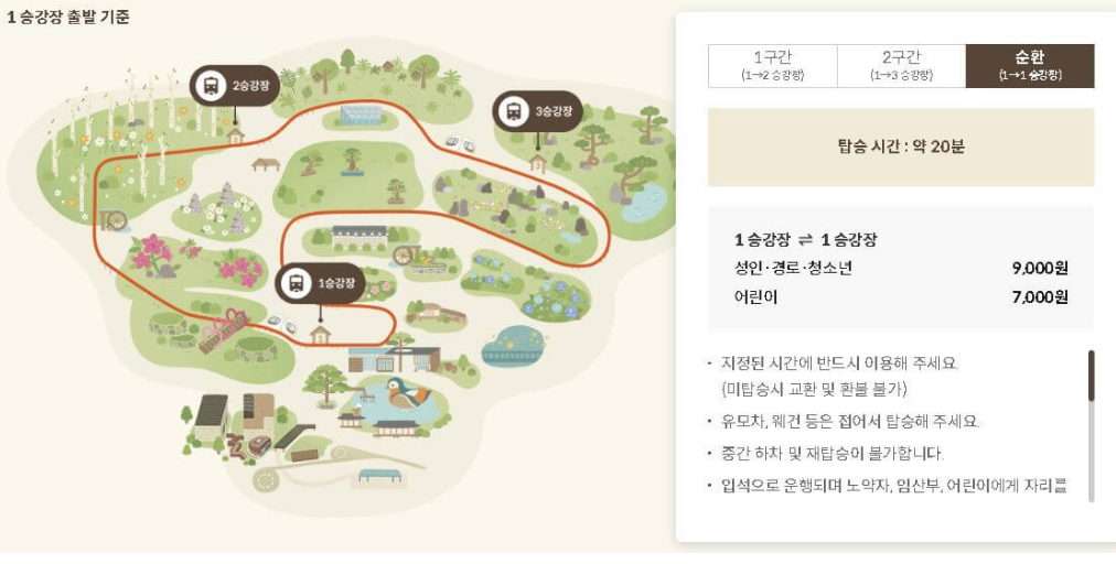 - 순환 : 1승강장 <=>1승 강장(성인 9,000원, 어린이 7,000원) 탑승시간 : 20분