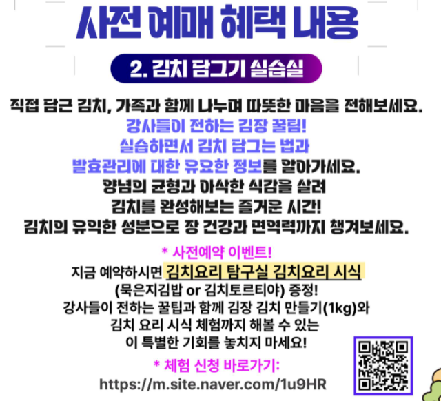 2) 김치담그기 실습길 : 현장가 20,000원 => 사전예약가 15,000원