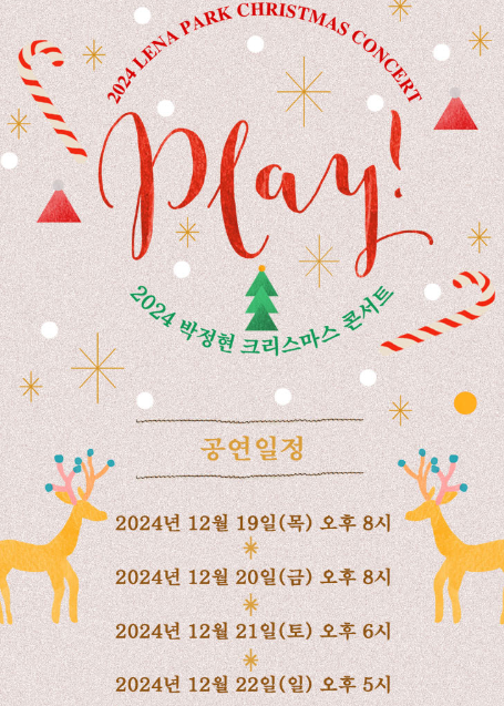 가수 박정현이 6년만에 겨울 콘서트를 개최합니다. 많은 팬들이 기다려온 2024 박정현 크리스마스 콘서트 'Play!'는 12월 19일부터 12월 22일 까지 나흘간 펼쳐집니다. 이번 콘서트는 특별한 크리스마스 분위기 속에서 박정현의 아름다운 목소리를 직접 들을 수 있는 기회이니, 매진 전 좌석확인 후 빠르게 예매하시기 바랍니다.
