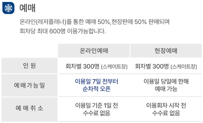 - 이용일 기준 7일 오전 10시부터 예매 가능