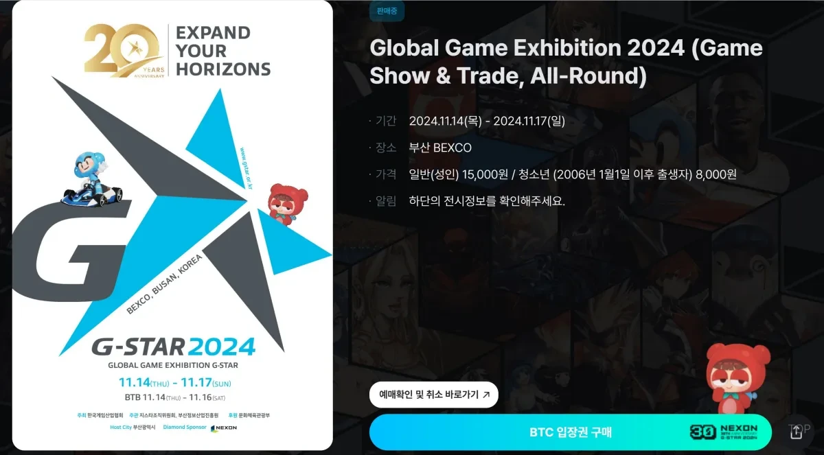 2024 지스타는 11월 14일(목)부터 11월 17일(일)까지 진행됩니다. 매일 다양한 프로그램과 부스가 준비되어 있어, 방문객들은 최신 게임과 기술을 직접 체험할 수 있는 기회를 가질 수 있습니다. 특히, 올해는 지스타의 20주년을 기념하는 특별한 행사로, 더욱 풍성한 콘텐츠가 마련될 예정입니다.