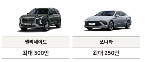 - 그랜저, 싼타페 - 최대 200만원(하이브리드 포함)