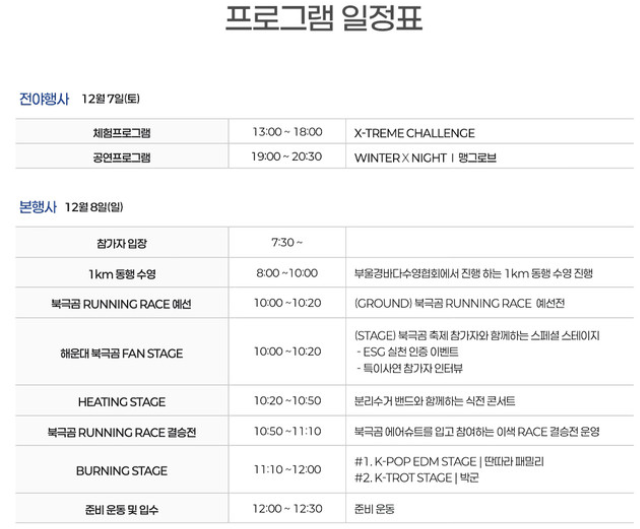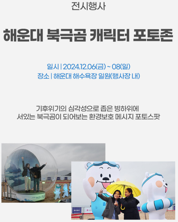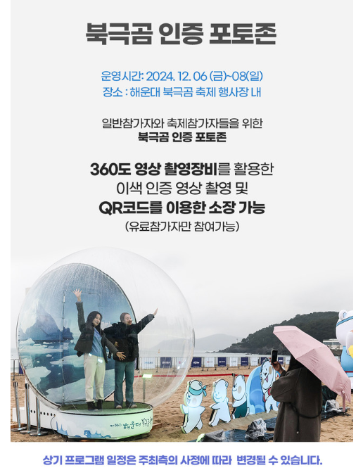 - 본행사 : 2024년 12월 7일 (토) - 북극곰 수영 대회 및 다양한 프로그램