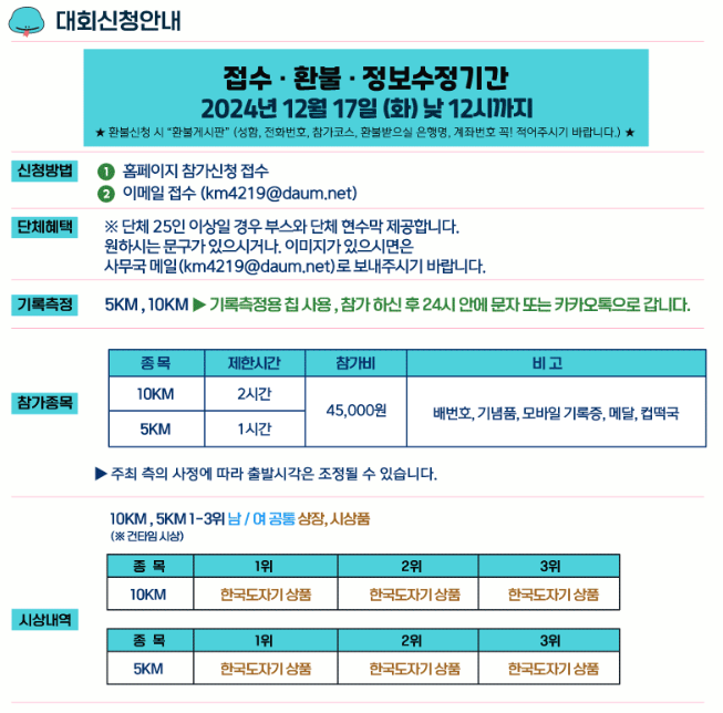 대회 참가 신청은 2024년 12월 17일 낮 12시까지 가능하니, 일정에 유의하시기 바랍니다.
