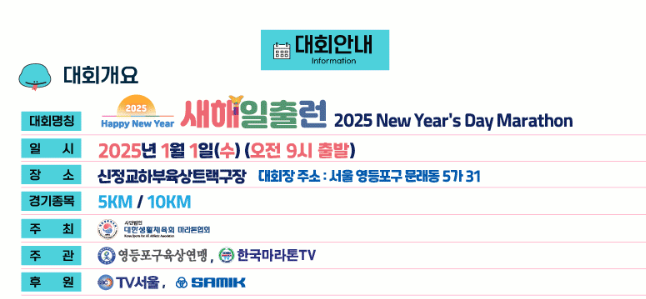 1. 2025 일출런은 2025년 1월 1일(화) 9시에 개최됩니다.