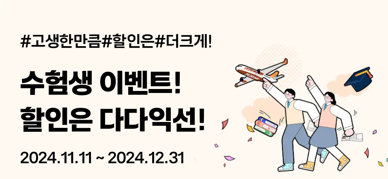 - 코레일 : 수험생 본인과 동반 1인까지 20% 할인 혜택 제공